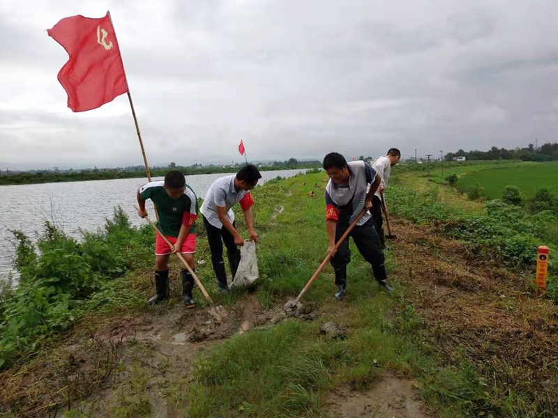 防汛工作到哪里,党支部就建到哪里。两场党委在防汛棚里成立临时“帐篷支部”,挂党旗、佩党徽、亮身份、树形象,成立党员突击队,充分发挥党支部战斗堡垒和党员的先锋模范作用,两场200多名党员干部冲锋在前,守卫在风口浪尖。一批退休老党员、在校大学生、教师和社区居民也主动请缨到防汛一线,男女老少齐上阵,守好两线堤防。