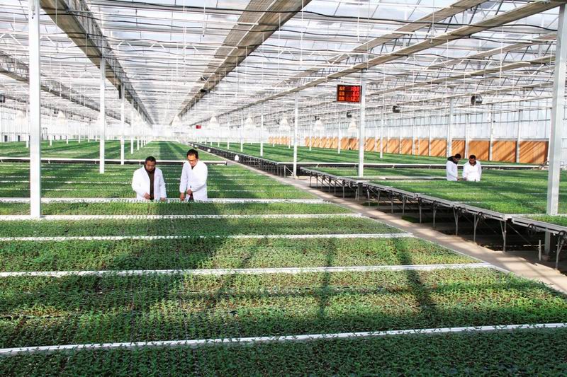 安徽农垦龙亢农场应用农业物联网技术,建设了5000平方米智能温室大棚,内设4500平方米可移动苗床,用于培育特种瓜果蔬菜苗,每年可提供果蔬苗600万株。图为农技人员在为幼苗做“体检”。(农民日报 2016年3月15日08版,李峰摄)