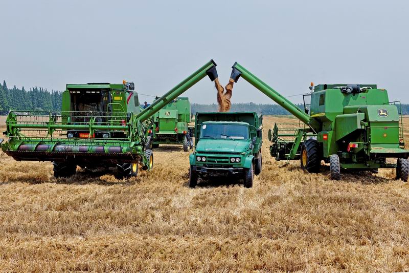 6月5日,由安徽省总工会主办、省农垦集团承办的小麦机收技能竞赛在寿西湖农场举行,来自省农垦12个农场的12名机手参加了比赛。此次技能竞赛以操作能力、作业速度、落粒数、割茬高度四个要点来评分,综合考察机手的技术素质。经过激烈角逐,潘村湖农场的杨正海夺得第一名。图为比赛现场。(安徽日报农村版2016年6月7日头版,鲍广云摄)